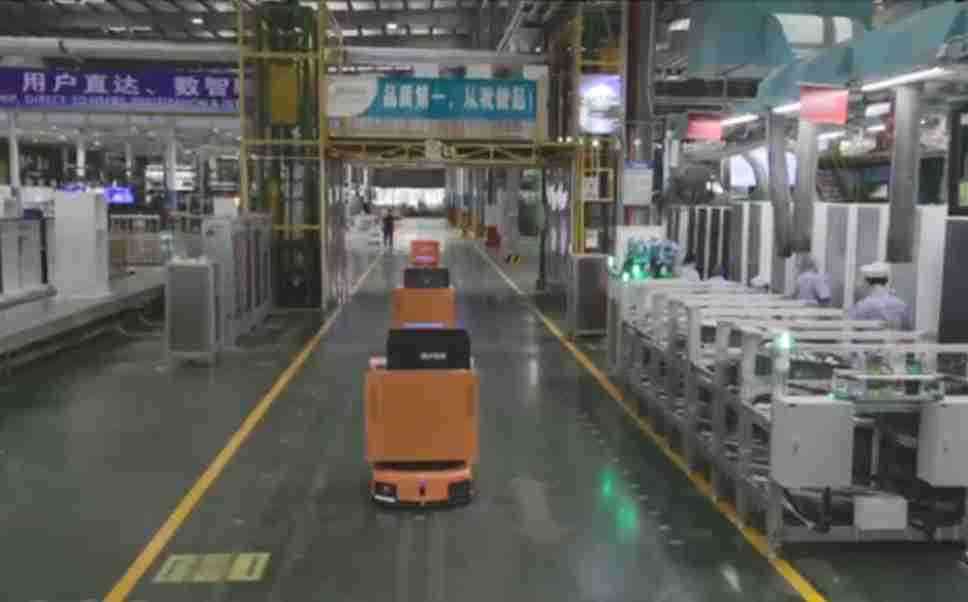 为车载冰箱物流配送打造的智能解决方案,,,,包含产中物流通过潜伏举升AMR搬运至线边,,,,产后成品物流智能仓储,,流程包含产中物流智能齐套入库,,,线边安灯叫料AMR智能配送至线边,,,,成品入库、、、出库,,,通过无人堆高车机器人,,,,智能仓储管理替代人工作业管理,,,实现更高存储、、更高效率、、更具柔性化的解决方案。。。